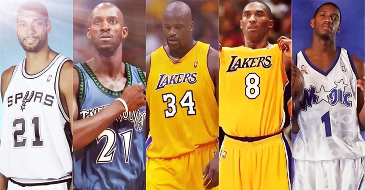 科比·布莱恩特、特雷西·麦克格雷迪、凯文·加内特、蒂姆·邓肯、沙奎尔·奥尼尔。