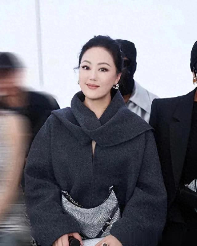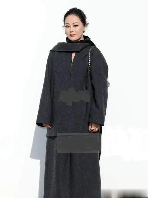 61岁章小蕙换风格后气质大变! 灰色罩衫大衣+长裙+围巾 高级又洋气