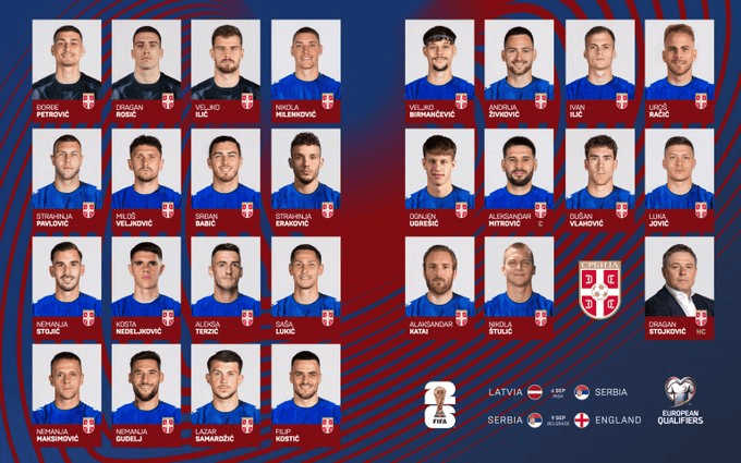 塞尔维亚将在9月的两场比赛中对阵拉脱维亚、英格兰。